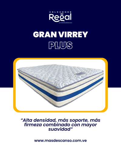 Colchón Gran Virrey Plus Regal: Descanso ortopédico con Pillow Top y látex de alta densidad. Hipoalergénico, adaptable y transpirable. ¡Confort y soporte garantizados! 8 años de garantía. Encuentra tu medida ideal.